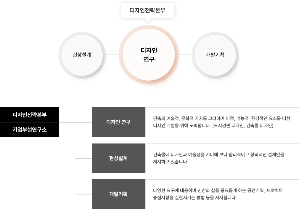 디자인 전략본부는 건축이 인간의 생활에 미치는 영향을 고려하여 사람들의 정서적, 심리적인 안정과 사회적인 공감대를 형성할 수 있는 창조적인 건축디자인 개발에 심혈을 기울이고 있습니다. 편안하고 건강한 건축, 새롭고 아름다운 공간을 구축하기 위해 치밀한 분석과 성공적인 전략으로 끊임없이 연구하는 라인건축의 창의적인 건축철학을 그 바탕에 두고 있습니다.